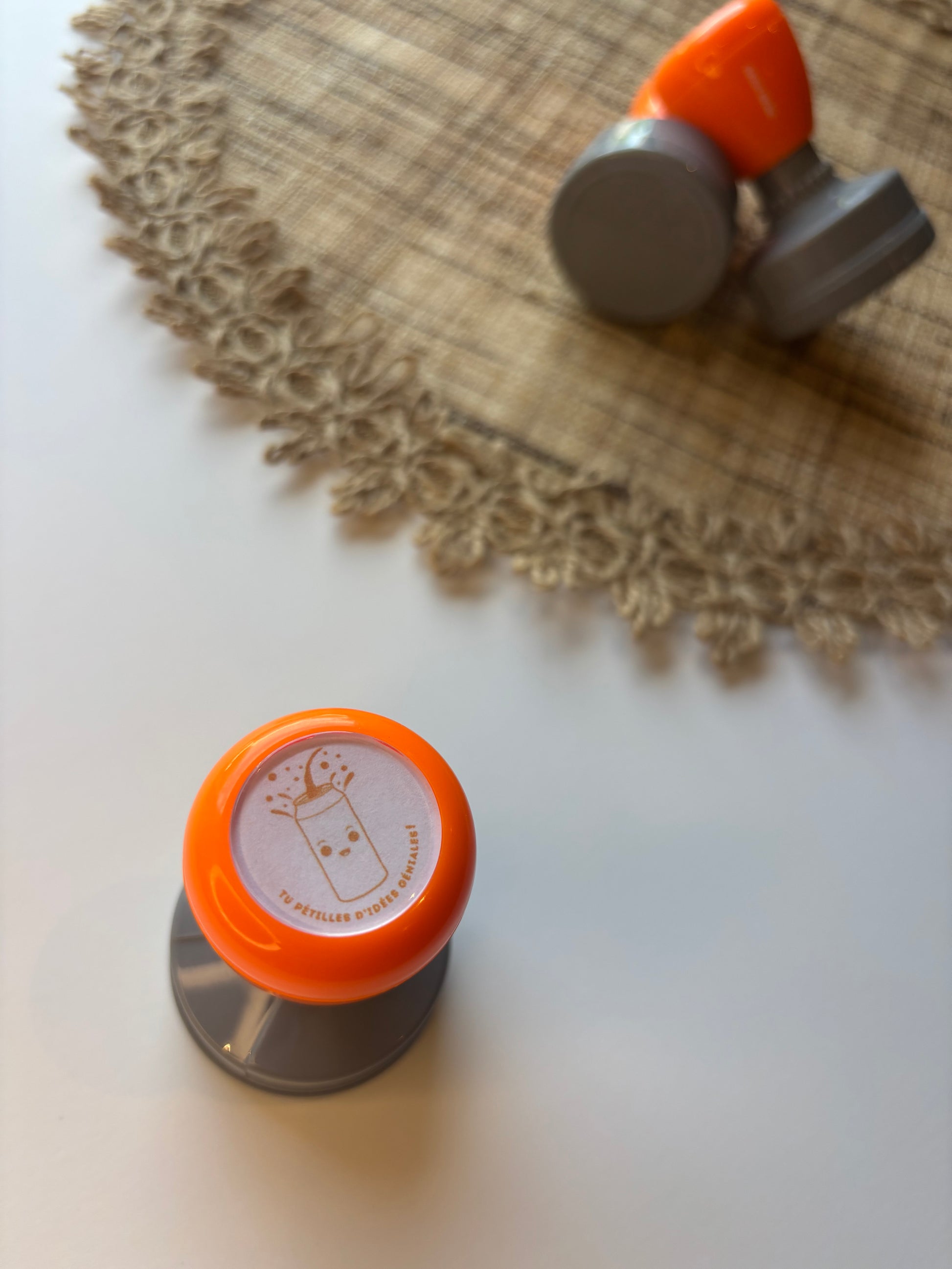 Parfaite pour les élèves dont la créativité explose comme des bulles! Une étampe qui célèbre les travaux remplis d’imagination et d’idées bien développées. Quand l’élève secoue son cerveau et que ça fait pshht! de géniales idées, cette étampe est le meilleur moyen de savourer son effort.